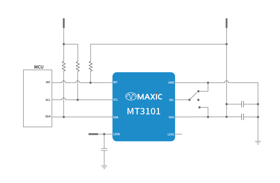 MT3101接近檢測傳感器內部集成了紅外光接收器、發射器、可編程低噪聲放大器、高精度ADC以及數字快速模式 I2C 接口,采用微型連接網格陣列LGA8封裝,體積為2.55mmX2.0mmX0.6mm,能夠輕松地放置于狹窄的空間內。小巧的芯片體積可以為TWS耳機和其他可穿戴、可便攜設備廠商提供更靈活的工業設計,助力產品的差異化發展。